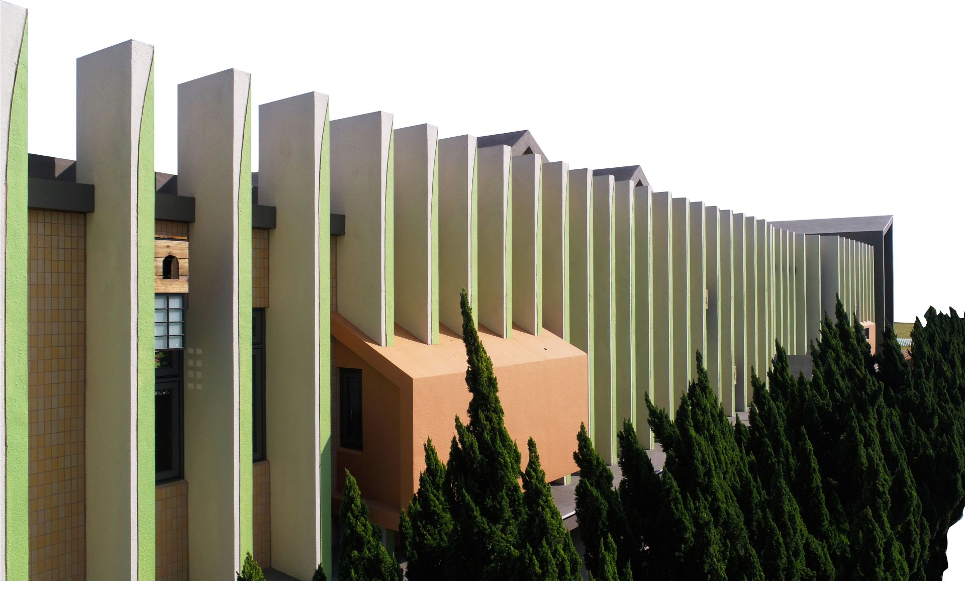 遮陽與通風的平衡:透過幾何立面的角度與間距控制,落實了阻絕熱能進入室內的物理屏障,並同步留出空氣對流的孔隙。